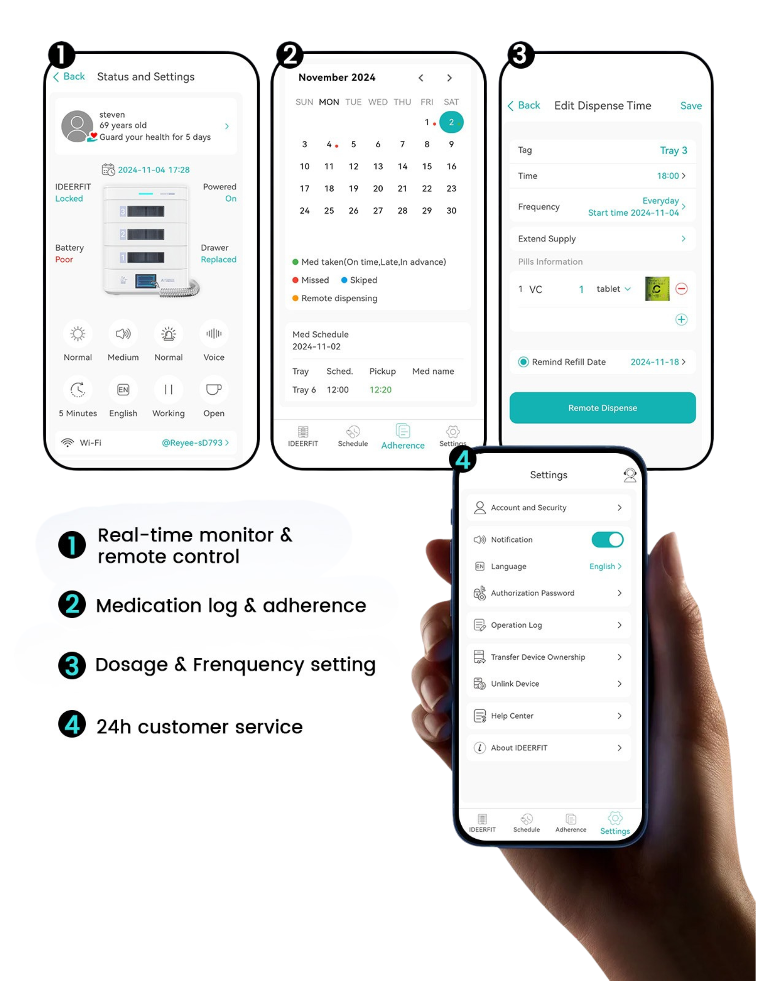 Care teams view adherence and alerts through the MedHive dashboard and app.